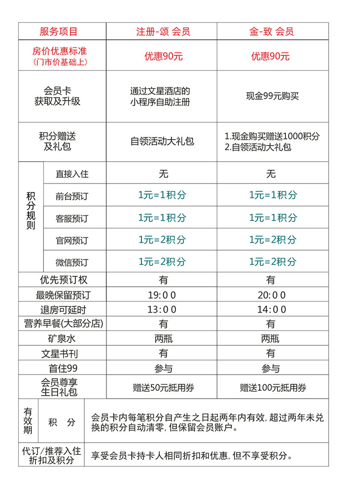 2. 代订或推荐他人入住,可同时享受会员卡持卡人相同折扣及优惠,但不享受积分;